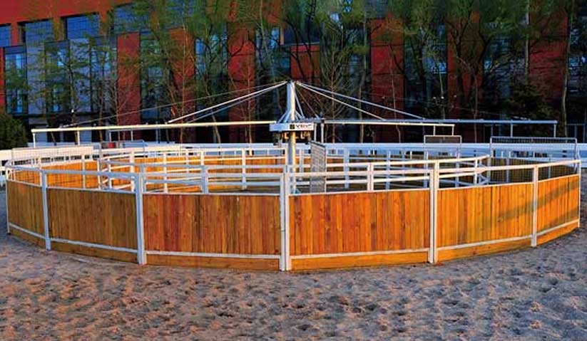 高級型遛馬機、標準型遛馬機、簡易型遛馬機、遛馬機內外圈圍欄、全封閉屋頂、半封閉屋頂